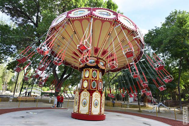 Здесь много тихих зон, с новыми удобными скамейками и яркими фонарями, и самое главное много зелени и, соответственно, тени – все многолетние деревья здесь сохранили. Также, в процессе реконструкции в парке обновили все аттракционы и открыли дополнительные автостоянки.